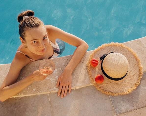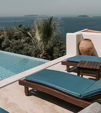 Discover a private home in the orchard bedrooms and baths with a private plunge pool and service and a three-sided view from the king size bed.